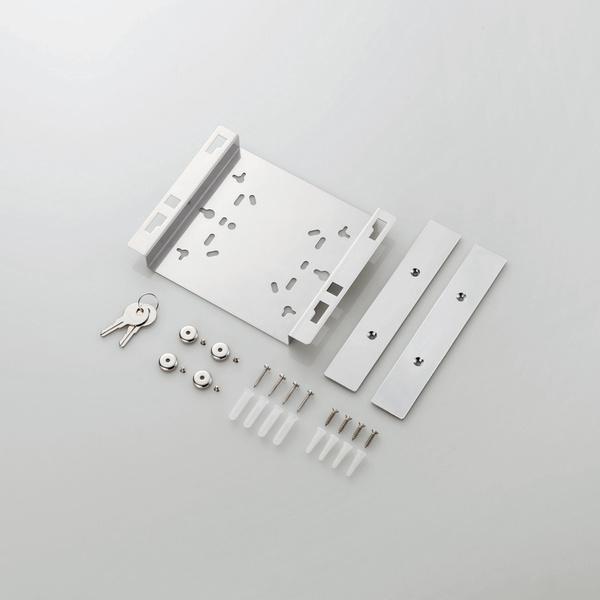 製品本体1台 専用シリアルケーブル1本、マグネット4個(ネジ4個)、設置用プレート2枚(木ネジ4個)、壁掛けプレート1枚(木ネジ4個)、セキュリティカバー1個、マニュアル2枚(クイックセットアップガイド、安全にお使いいただくために)、シリアルシール2枚