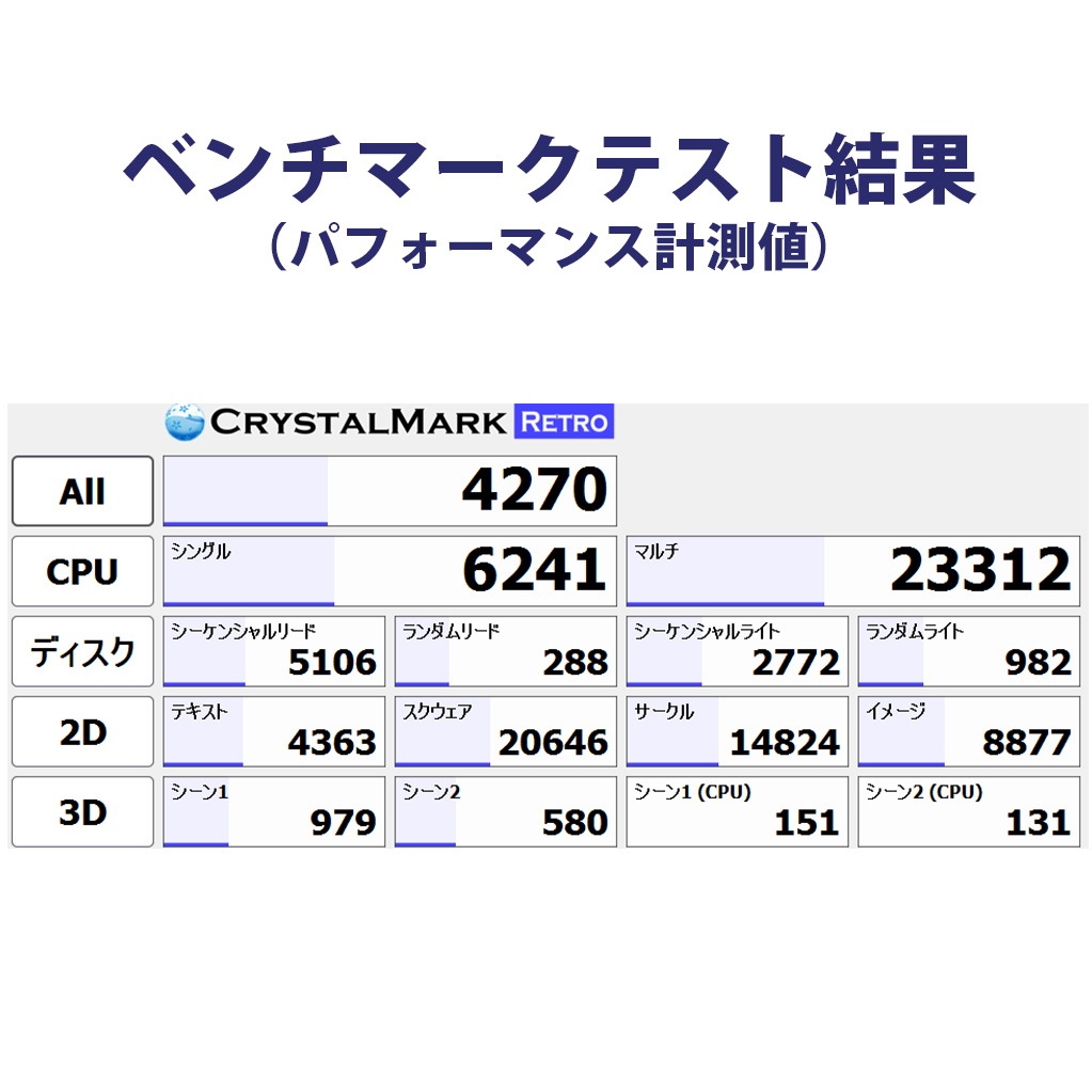 測定ツールは「CrystalMark Retro」を使用しています。