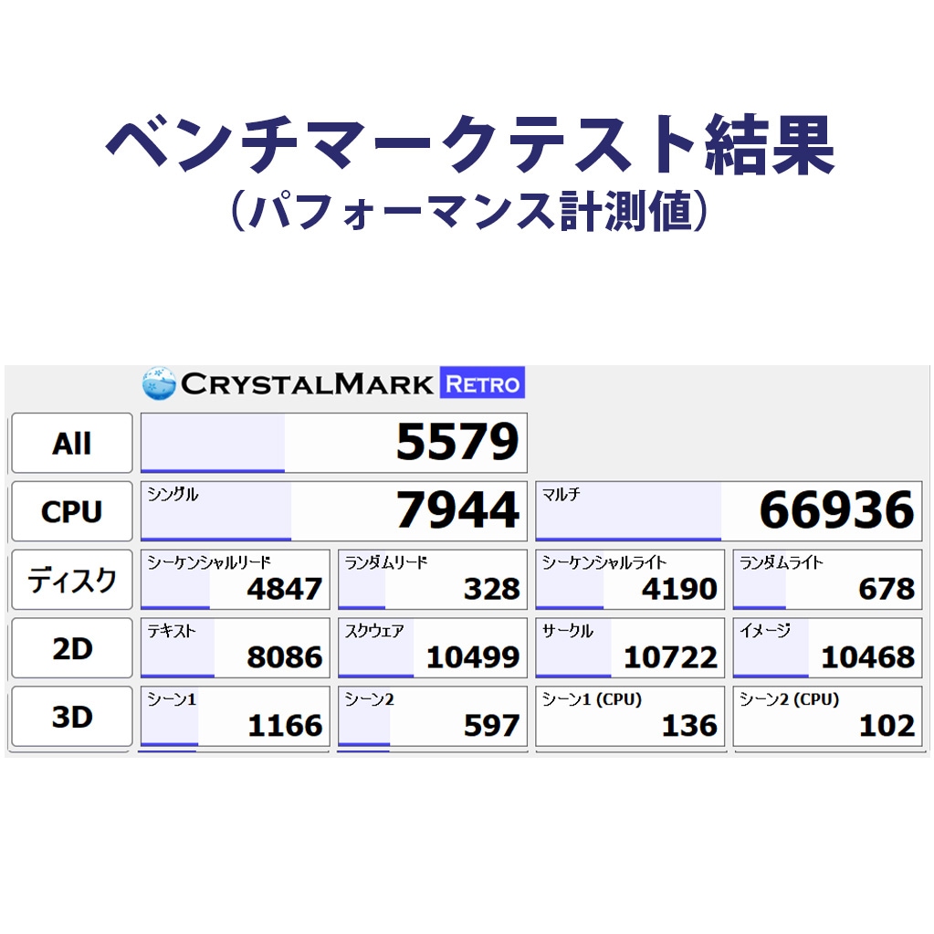測定ツールは「CrystalMark Retro」を使用しています。