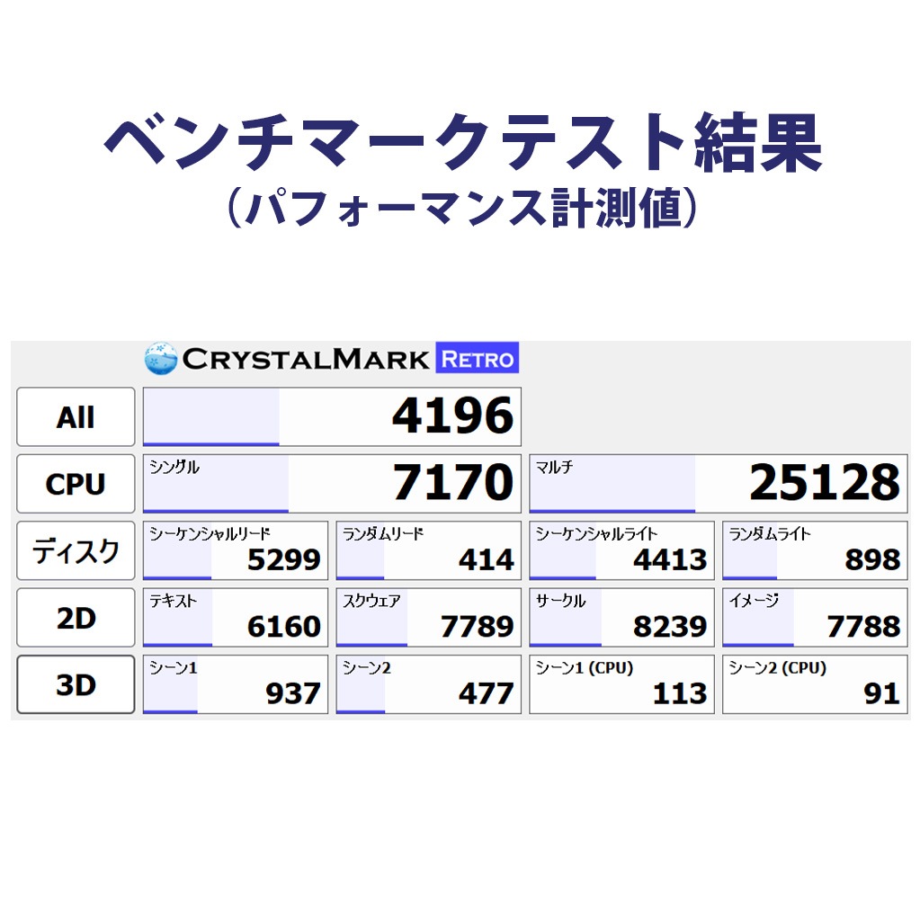測定ツールは「CrystalMark Retro」を使用しています。